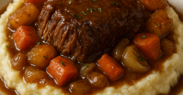 Slow-Cooked Pot Roast with Gravy Over Creamy Mashed Potatoes Recipe