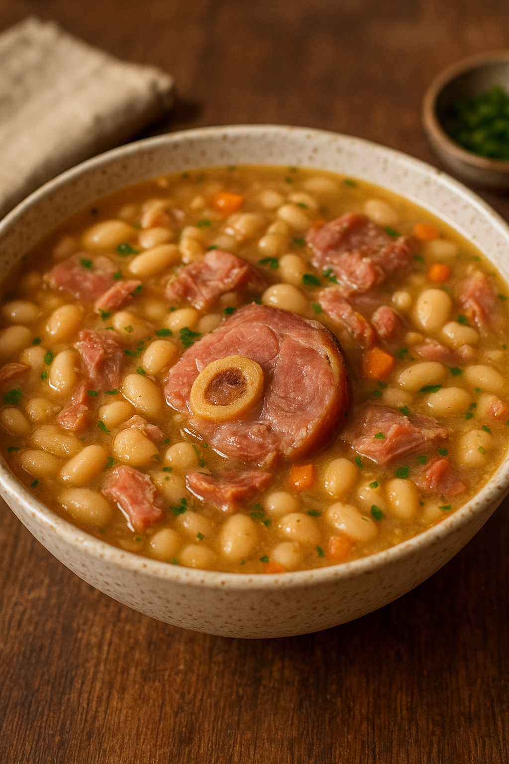 2. Cover and cook on LOW for 8โ€“10 hours or HIGH for 5โ€“6 hours, until beans are soft and ham is tender.