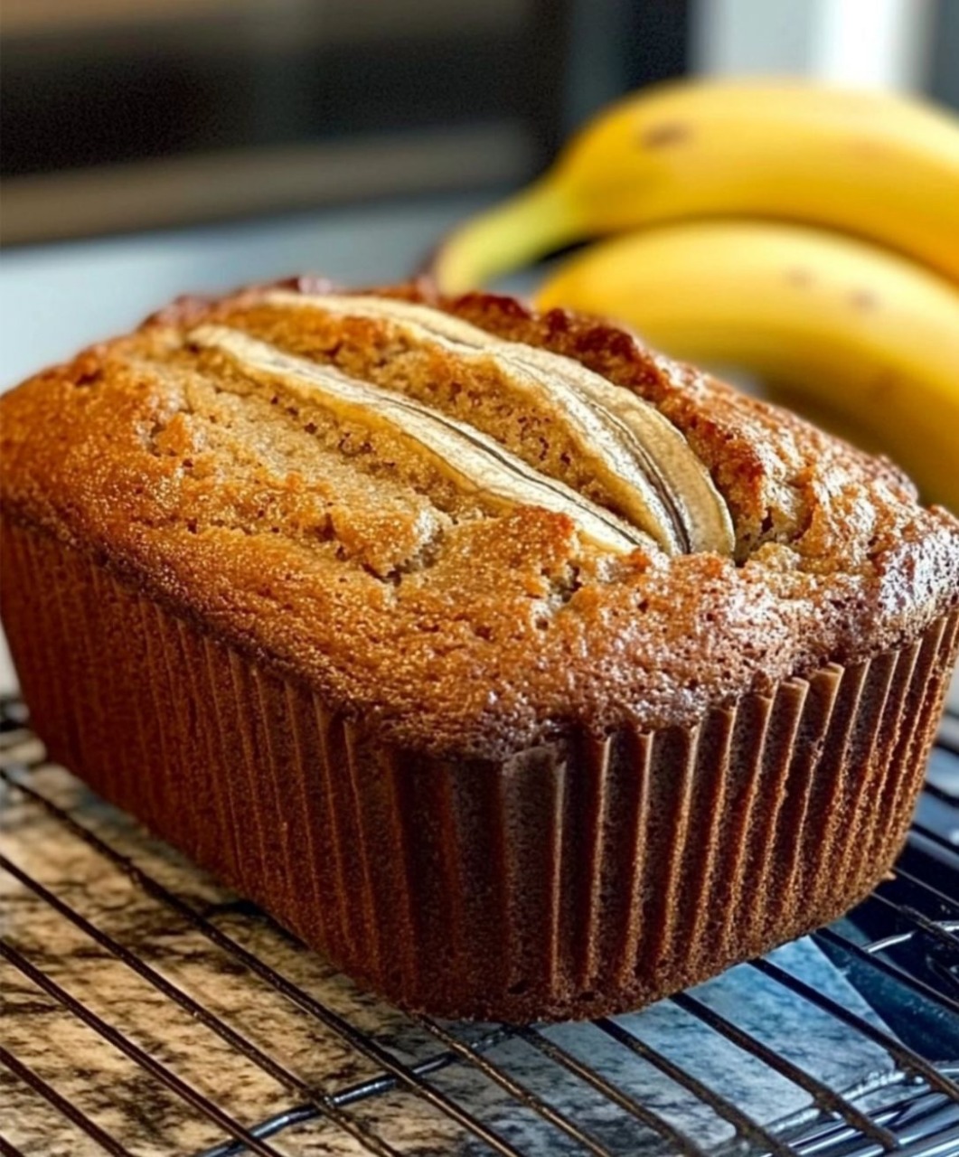 Allow the banana bread to cool in the pan for 10 minutes before transferring to a wire rack to cool completely.