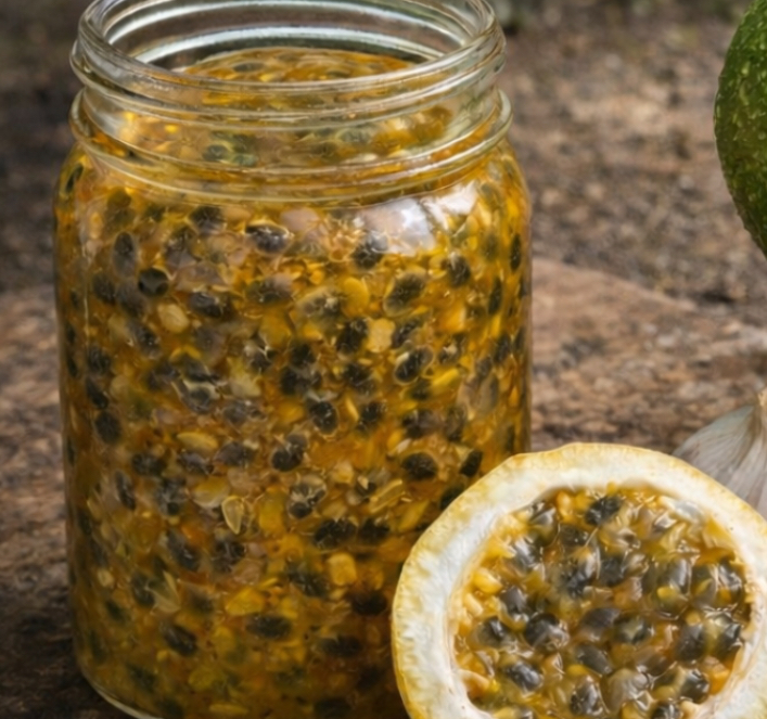 The image shows a natural mixture made with passion fruit, garlic, lime, and usually honey. These types of remedies are often shared online for general health, but they are not proven cures for blindness or myopia. However, the ingredients are nutritious and can support overall health.