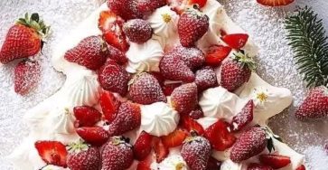 Pavlova Christmas Tree with Strawberries and Passionfruit