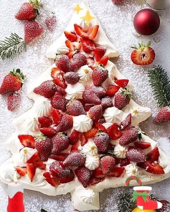 Pavlova Christmas Tree with Strawberries and Passionfruit
