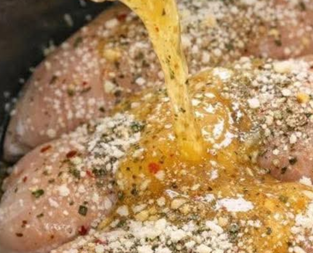Next, evenly distribute the dry Italian dressing seasoning packet over the chicken. This concentrated blend of herbs and spices is the primary flavor driver, infusing the meat with robust, zesty notes.