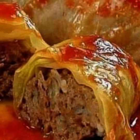 - Place some cabbage leaves on the bottom of a deep 9″ x 13″ baking dish or roasting pan. Taking one leaf at a time, distribute about ¼ cup of ground beef mixture on top and wrap up (fold in sides and roll up, placing in prepared dish, seam side down. Continue with remaining ground beef mixture/leaves.