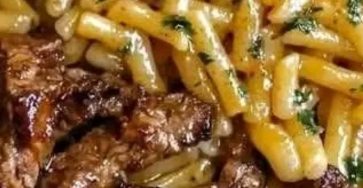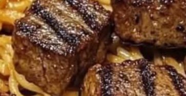 Sizzling Garlic Butter Steak Bites with Creamy Spaghetti